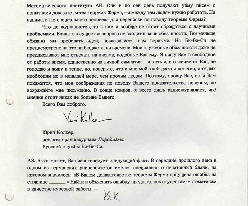 ОТВЕТ НА ПИСЬМО В РЕДАКЦИЮ