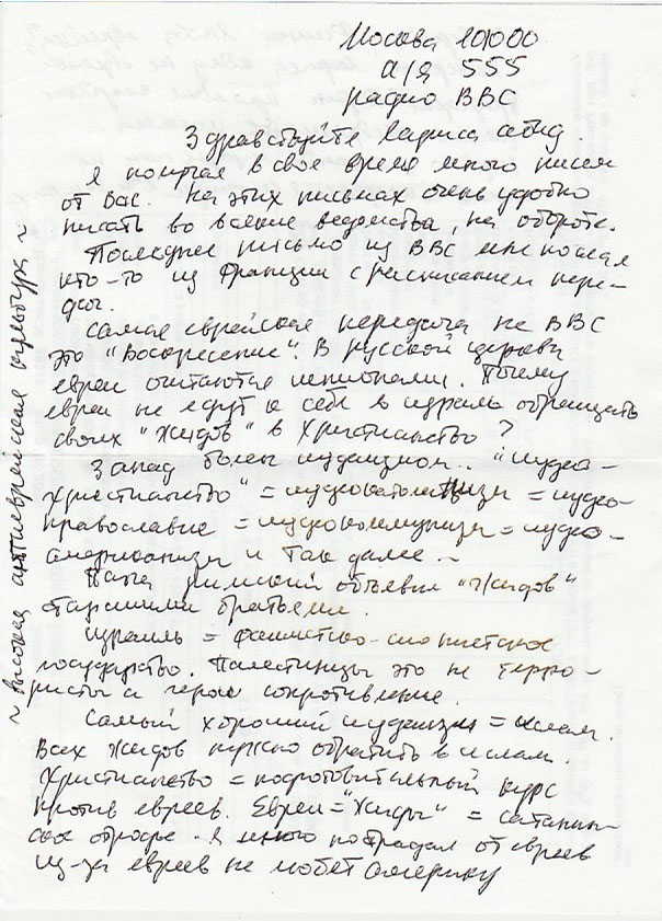 Последнее письмо из ВВС мне послал кто-то из Франции с расписанием передач.