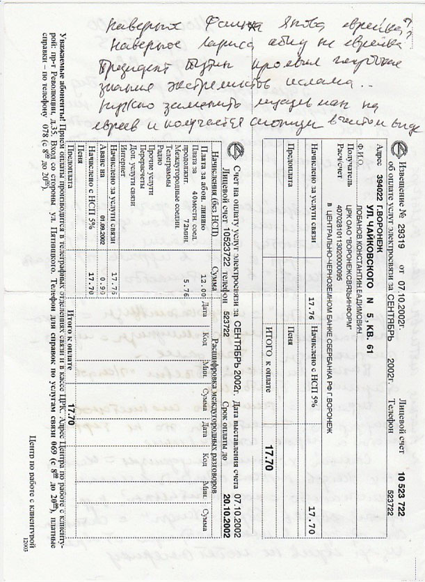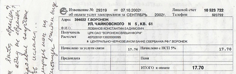 Я получал в свое время много писем от Вас. На этих письмах очень удобно писать во всякие ведомства, на обороте.