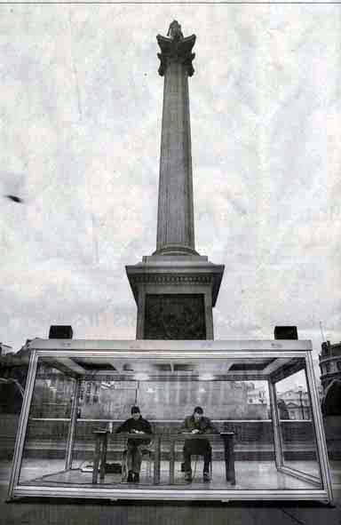 Перформанс (если уж говорить по-русски) назывался Reading One Million Years («Читаем миллион лет»). Чтецы (актеры), числом шестнадцать, работали посменно, парами, в течение семи дней. Звуки их голосов выводились из будки на площадь. Будку охраняли от хулиганов и других ненавистников искусства, но каждый благонамеренный прохожий мог беспрепятственно и совершенно бесплатно подойти и приобщиться: послушать и подумать о бренности нашей жизни, о всяческой людской скудели и юдоли. Или о другом: о суетности и подлости нашего времени. Кому как нравится. Искусство ведь многогранно, вызывает разные эмоции, а тут размах прямо-таки эпический.