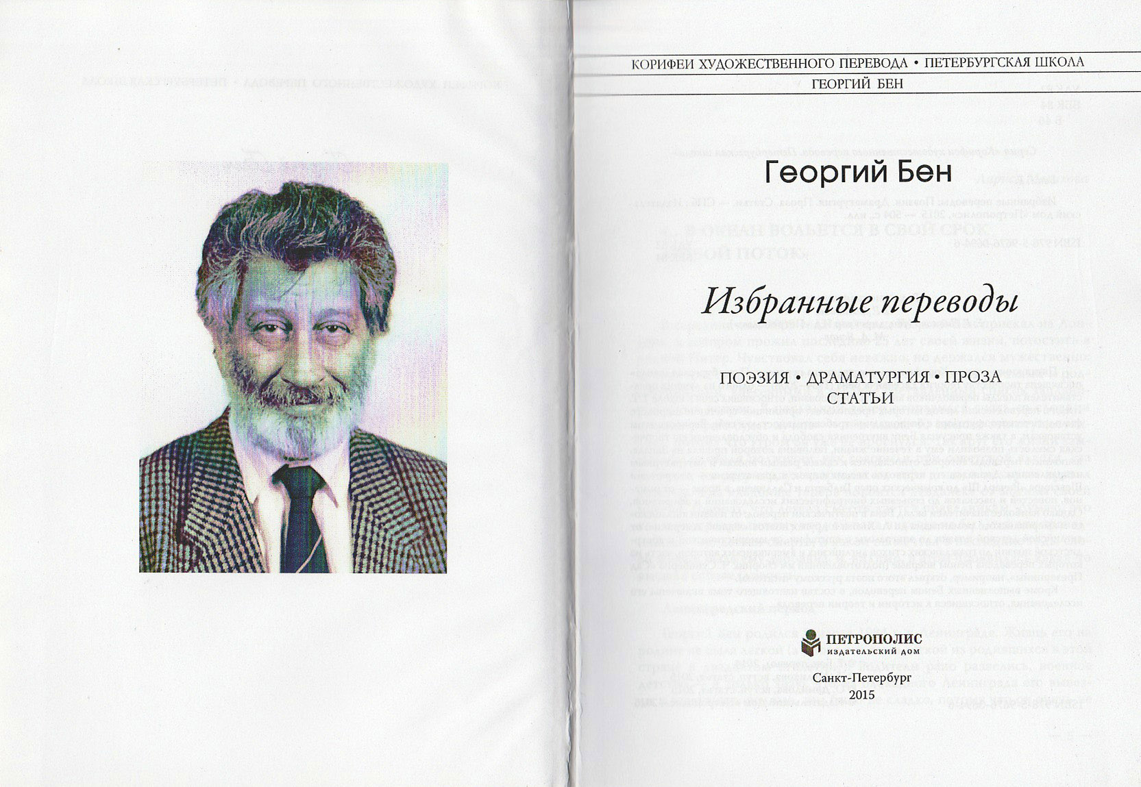 ПЕРЕВОДЧИК ИЛИ ПОЭТ? (о книге Георгия Бена)