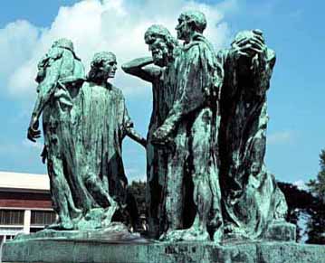 Вспомнили Родена и его знаменитую бронзовую группу "Граждане Кале" — это о том, как голодающие граждане Кале решили, наконец, не уронив достоинства, сдаться Эдуарду.