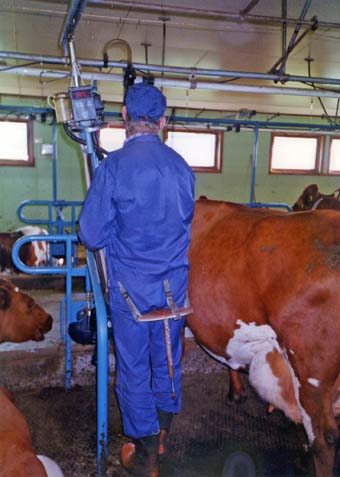 Нам, иностранным гостям, с видимым удовольствием показали нечто удивительное: дойку коров. Понятно, что дойка автоматическая, теперь этим и в России никого не удивишь. Зато чистота норвежского коровника — вещь удивительная. Коровы стоят каждая в своем стойле, на решетчатых настилах, так что навоз уходит под эти настилы и убирается из-под них автоматически. Хозяин фермы точными и быстрыми движениями обмывает вымя и прикрепляет доильный аппарат, присев на одноногую табуретку. Когда он встает, оказывается, что табуретка прикреплена тремя ремнями к тому месту, на котором сидят (один ремень на поясе, два других на бедрах). Таким образом, он не тратит времени на перенос табуретки с места на место и не пачкает рук. С весны и до конца сентября коровы пасутся на воле, на тучных лугах, их загоняют в коровник только на время дойки и на ночь. Срок жизни молочной коровы колеблется от 5 до 9 лет, в зависимости от ее продуктивности. Поразило меня и то, что оплодотворяют теперь коров при помощи искусственного осеменения. Быкам и вовсе никакой работы не осталось... Не к этому ли и человечество движется?