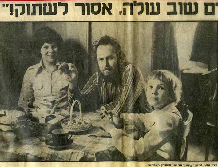 «…Иврит 5 раз в неделю по 5 часов, много домашнего задания, которое мы не всегда полностью делаем, т.к. у нас, как в Ленинграде, непрерывный поток гостей. Юра по большей части занят писанием. Сегодня у меня сильная головная боль и я не ходила в ульпан. Я простудилась несколько дней назад, теперь болит лобная пазуха, насморк, и жить стало плохо… Юра по-прежнему очень раздражителен и несдержан, в непрерывном конфликте с Лизой. Разумеется, и Юре далеко не всегда плохо, скорее — наоборот: изредка плохо, а по большей части хорошо, но ты же знаешь Юру, раздражиться ему ничего не стоит… Лиза сейчас ходит в летний лагерь для детей олимов, ей там очень нравится. Их возят в бассейн, в зоопарк, в музеи и т.д. … Конечно, здесь есть не всё. Например, черники, брусники и клюквы нет и быть не может…»