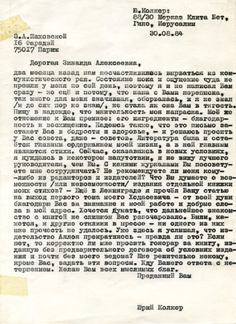 Адрес Шаховской тоже попал ко мне случайно и ни с какой реальностью в моём сознании поначалу соотнесён не был; это была абстракция, набор отвлечённых значков; улица Фарадея дом 16, 17-й аррондисман Парижа. Потому-то я и был так смел. Четвертого марта 1981 года я написал Шаховской моё первое письмо, будучи совершенно уверен, что оно не дойдёт. Дальше шла такая логика: если письмо всё же каким-то чудом дойдёт, проскользнёт через непременную перлюстрацию (полудохлый большевизм потерял когти), то Шаховская не ответит на него; кто я такой, чтобы ей браться за перо? Если Шаховская ответит, то ответное письмо не дойдёт; полудохлый большевизм хоть и потерял когти, да не потерял своей мелочной сущности, не упускал случая напакостить, где только можно. И что же? Ответ Шаховской, датированный 20 марта 1981 года, был у меня в руках в начале апреля 1981 года — в затхлом, безнадежно провинциальном Ленинграде (не в отличие от Москвы, конечно; Москва была ещё в тысячу раз провинциальнее). Чудо! … Мог ли я тогда вообразить, что через пять лет увижу Зинаиду Алексеевну, и не где-нибудь, а у неё дома, на улице Фарадея? Мог ли думать, что наша переписка продлится 17 лет (ровно столько, сколько Ходасевичу было отпущено прожить в эмиграции)? И что еще через 17 лет я соберу эту переписку и внимательно перечитаю ее, делая удивительные для меня открытия по ходу чтения, — ведь я, конечно, ни одного письма из этой коллекции выбросить не мог, а нужно и то признать, что при получении этих писем, и притом целые десятилетия, — и в Ленинграде, и в Иерусалиме, и в Британии, — мне, выбивавшемуся из сил, чтобы подневольным трудом прокормить себя и близких, читать их должным образом и думать над ними как следует — было просто некогда …