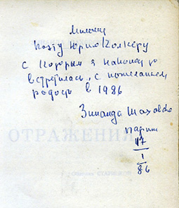 Thank you very much for your letter of 7 October, 1997. Sorry I didn’t react immediately (just yesterday I’ve been back from Russia). Here please find a copy of Zinaida Shakovskoy’s book in Russian. A German copy is also available.