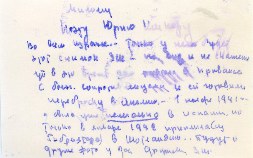 [К письму был приложен фотографический портрет Шаховской 1949 года со следующей припиской на обороте:]