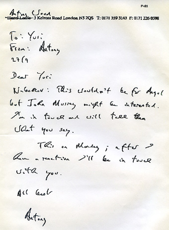 к моему величайшему сожалению, издательство John Murray не хочет печатать Вашу книгу. Официальной бумаги они мне вообще не прислали (таковы нынче нравы в Англии) — и это несмотря на мое вполне официальное письменное обращение, обмен звонками и факсимильными письмами, когда всё это начиналось, — а прислал мне записку рецензент Mr Antony Wood — записку совершенно невразумительную, общий смысл которой сводится к тому, что книга, мол, едва ли заинтересует английского читателя. Внятно объяснить, что, как и почему, — он не может или не хочет. Так что англичане оказались не умнее американцев.